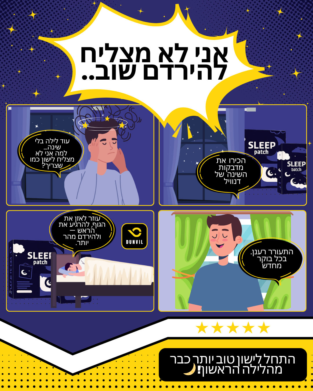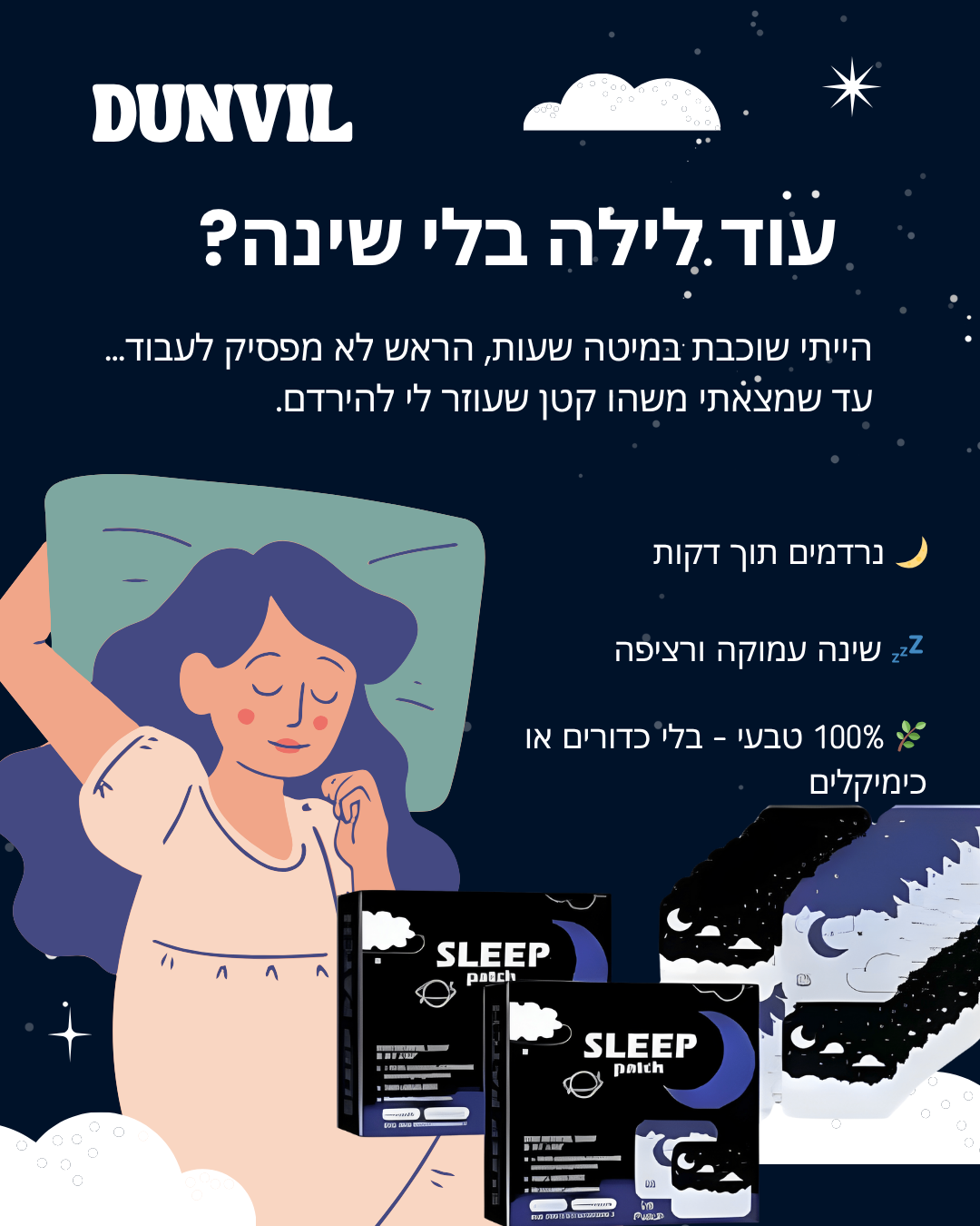 💬 "ניסיתי אינספור פתרונות לשינה... המדבקות של Dunvil היו היחידות שבאמת עבדו. סוף סוף אני נרדמת בקלות, קמה חדשה ומרגישה שהחזירו לי את השקט והאיזון בחיים 💜"
